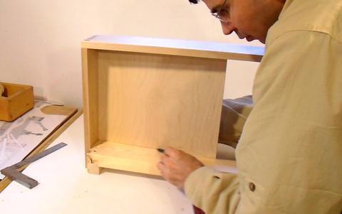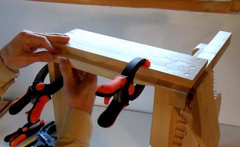 Here I'm gluing the support rail in place. I just push that up against the edge