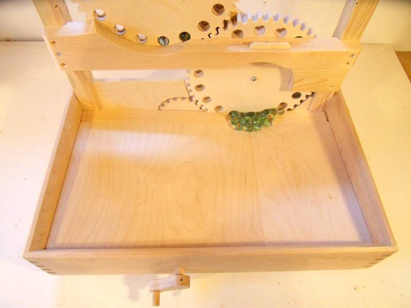 act as part of the back wall. The marbles are larger than the gear