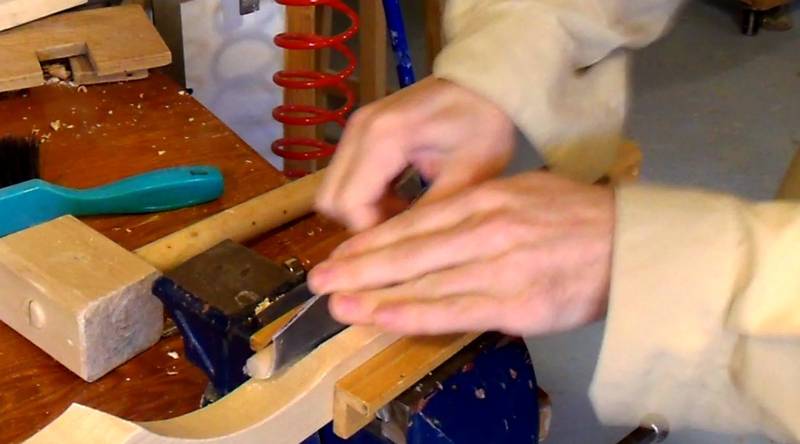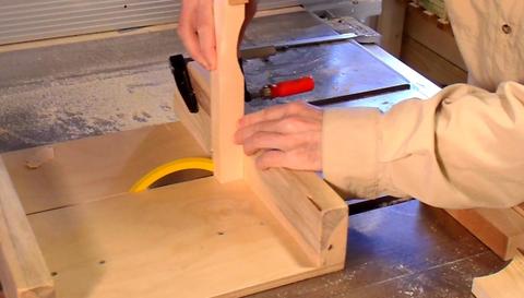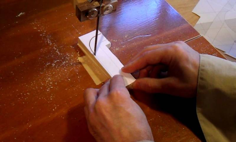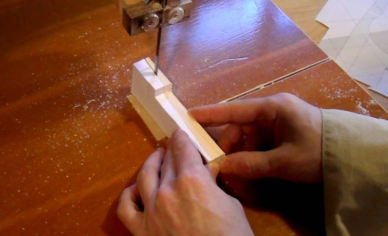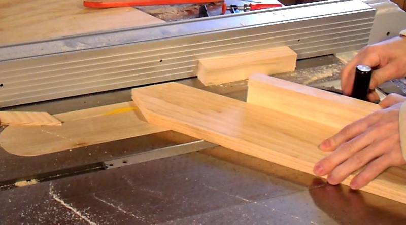 These are cut out of a wedge-shaped piece of wood. Here I'm cutting the wedge shape