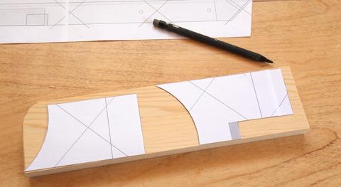 I cut out the top view of the ramp from the plans and am marking the outline of the