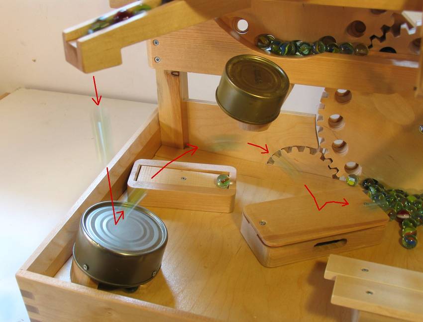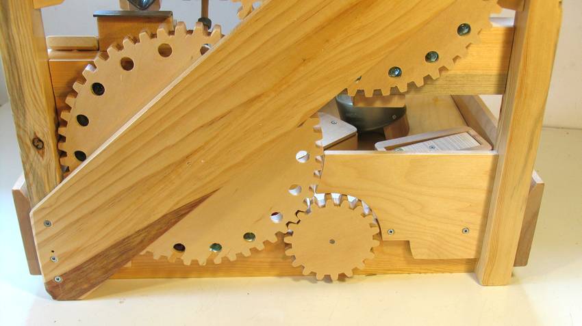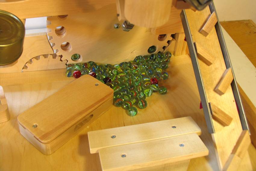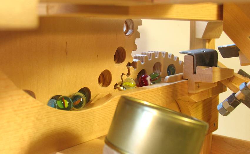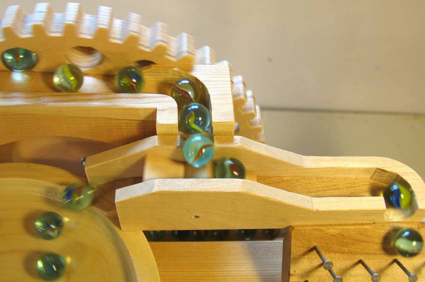 The elevating mechanism for marble machine 2 is a series of gears with