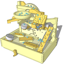 People often asked for plans for that machine, but the machine was totally cobbled together one piece at a time, so it wasn't the sort of thing I could draw plas for. So I designed and built a new and improved version of the machine in 2011. The design was modified so it would be easier to build from a set of plans