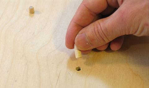 then place the dowel centers markers in the holes.