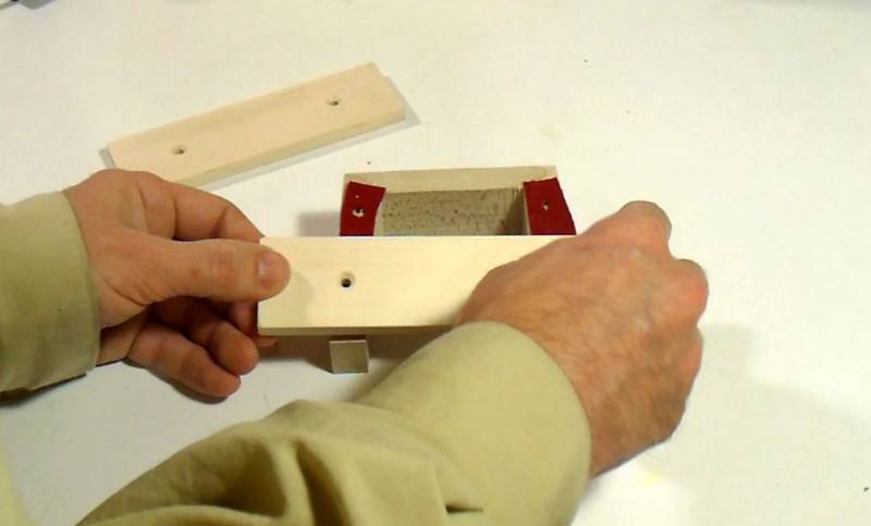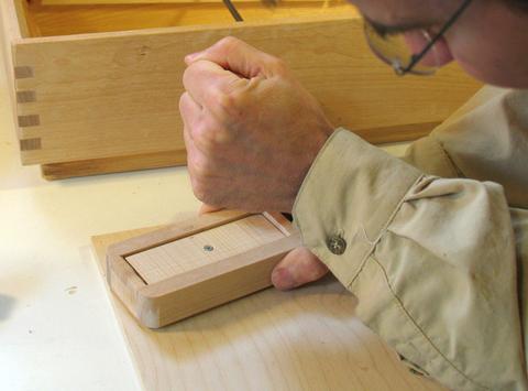 I'm using the wedge-shaped part that I cut away from the block in a previous step as an