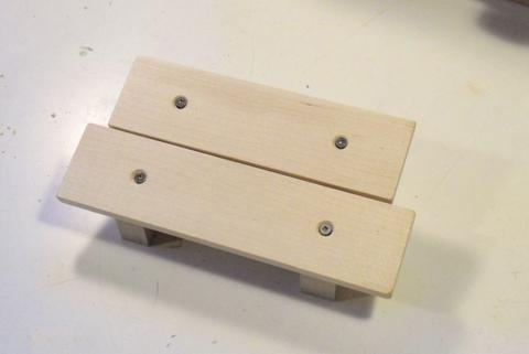 I cut the dowel into pieces 15 mm in length, then glue those into 1/4" holes in the floor.