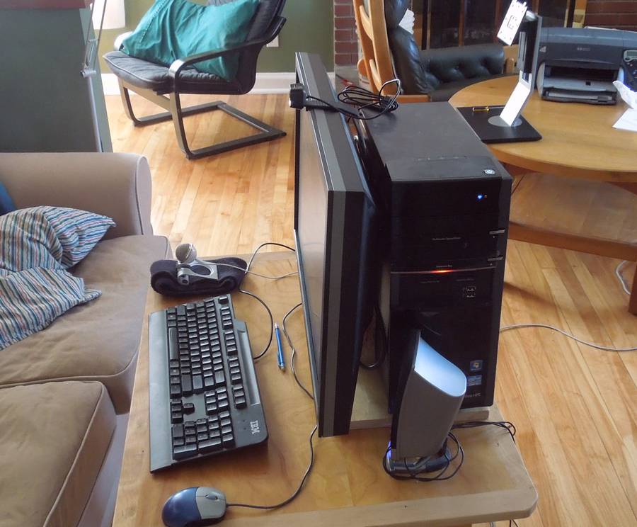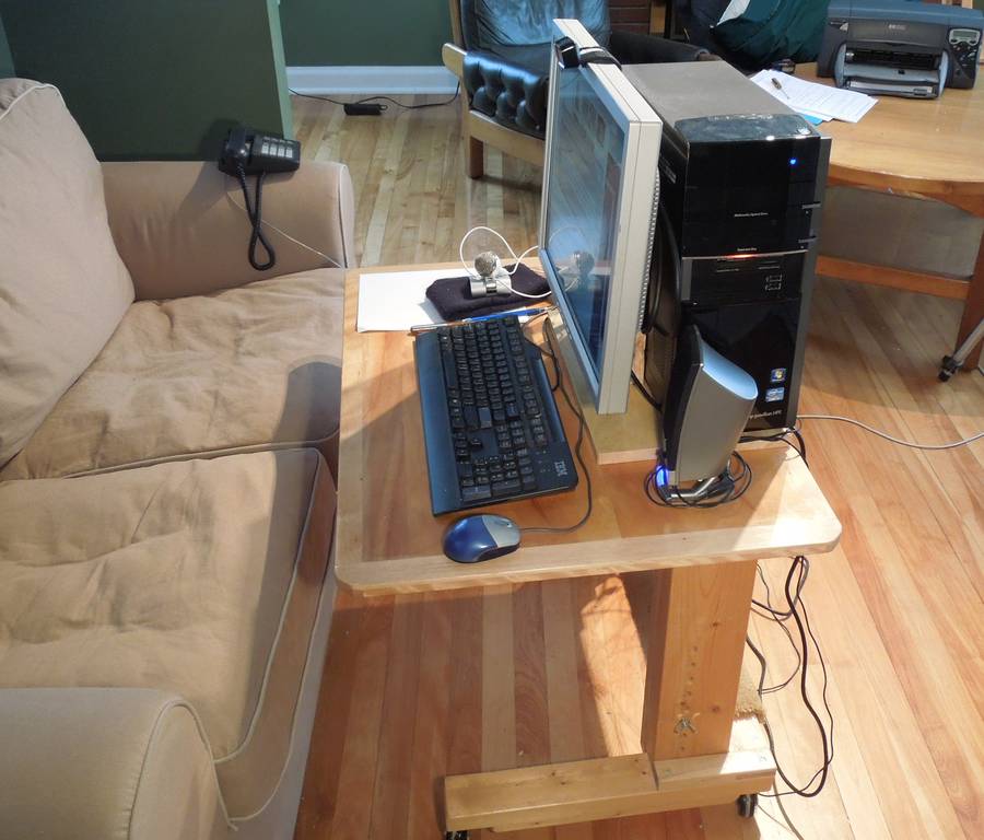 low desk on wheels so I can comfortably sit on the couch, pull the computer