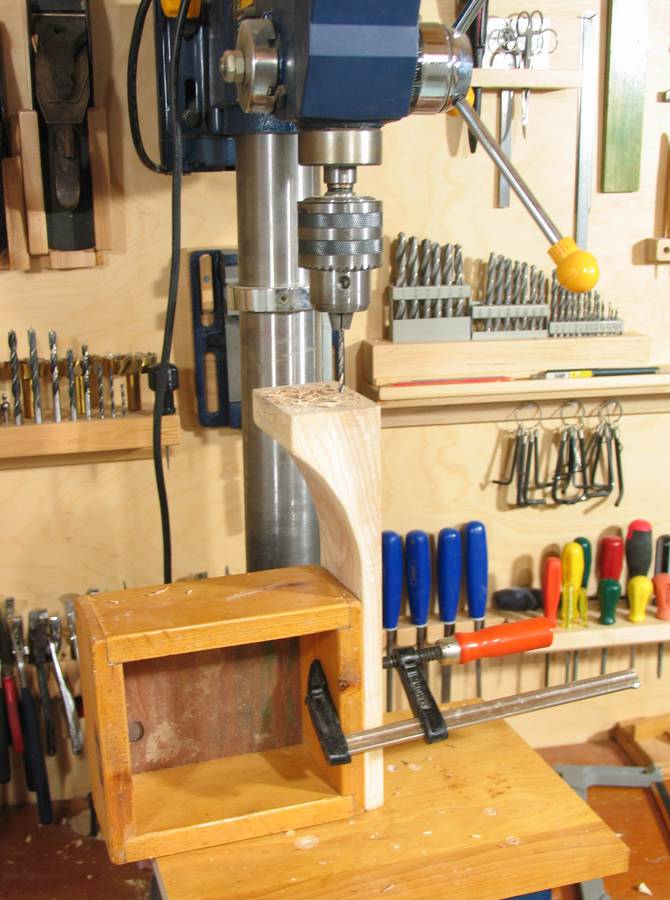 Drilling some screw holes in the end of this solid piece. If it had been much