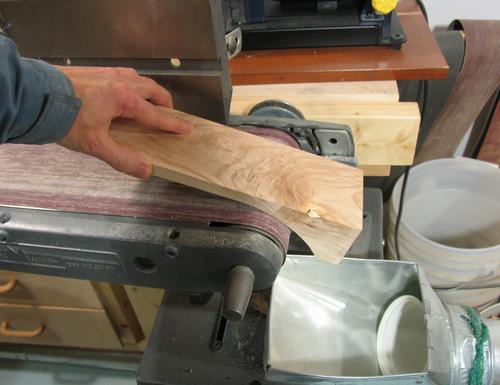 I cut that out on the bandsaw (no picture of that). Here I'm sanding the curved