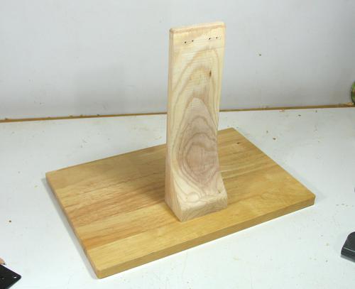 The piece mounts to a base, which is just a piece of recycled hardwood from