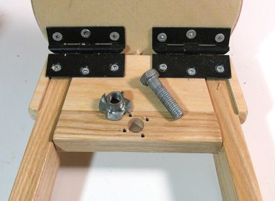 You can see the adjustment screw sticking out of the back. Though I had a nice thumb screw that would have worked, the hex nut was easy enough to turn on its own, and that bolt was a little longer, and took up less space. to adjust the angle of the monitor, it's best to just tilt it way up, and reach behind and turn the screw with one's fingers.