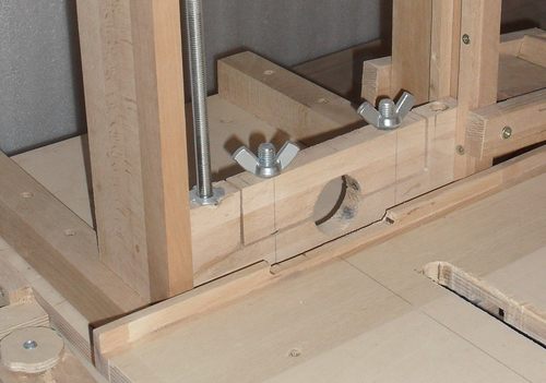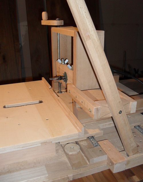 The router mount is just a piece of wood with a round cut out with a bandsaw,