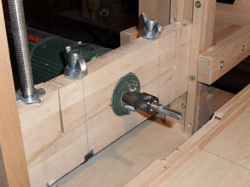Hello Matthias, Actually I was looking for a long time for a small slot mortising machine. but the few machines which I found were heavy, big and expensive. So I stayed with my chisels. Until I found by accident your home page and your plans for a slot mortising machine. I have to say, I was so excited, that I left home, went to the next DIY and tried to buy all items which I need to build the jigs. Some parts I have to order in internet and I am waiting impatiently for them." We emailed back and forth a bit more, but the rest of the thread was in German, so there's no point in quoting it here verbatim. Hessam really couldn't wait to build his machine. In the mean time, he wanted to avoid using PayPal and credit cards, but other options take much longer. So he just started building something approximately like my machine without the plans. So the topology of his machine is very similar to the original, but all the dimensions are different.