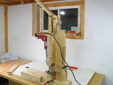 The plywood that holds my cast iron bracket and hand drill slides up and down on dovetails