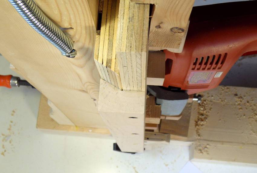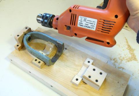 piece on the right is only screwed loosely to the plywood piece with the drill on