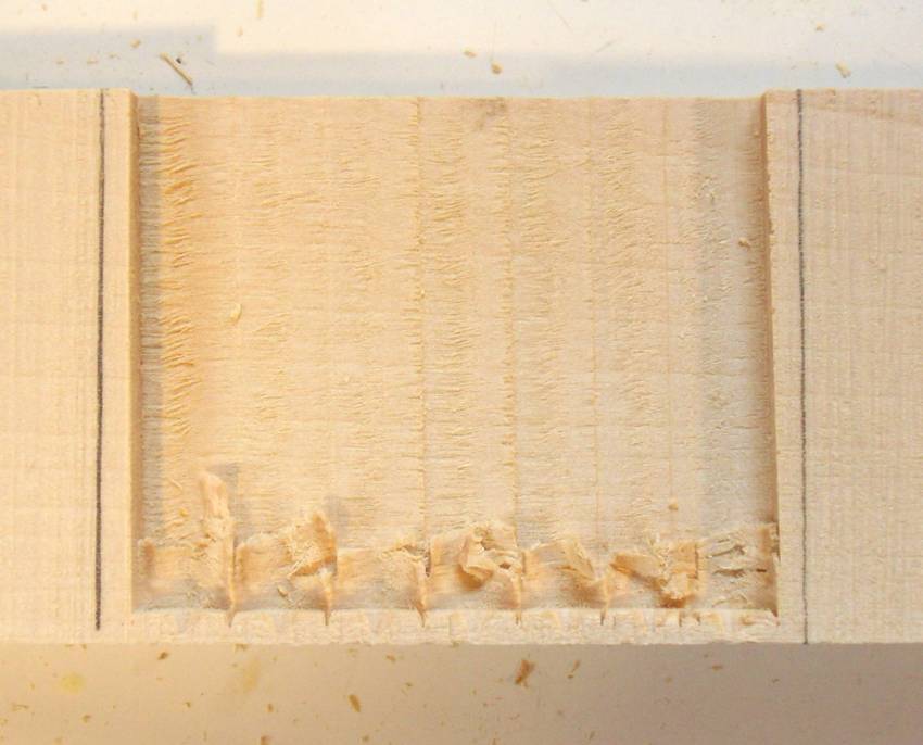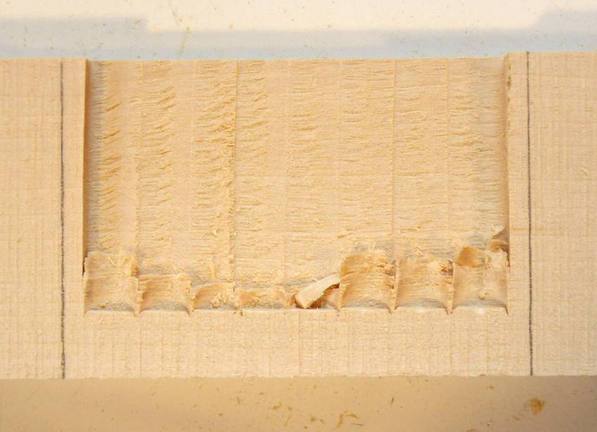 By comparison, here's a cut open mortise that was done on Jacques Jodoin's hollow chisel