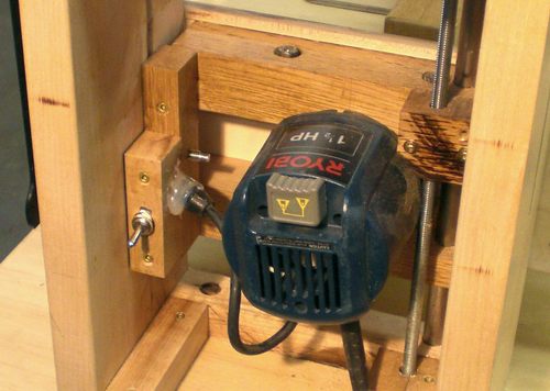 "I cut the oak router bars with a band saw and finished them with a round sanding cylinder on the drill press.