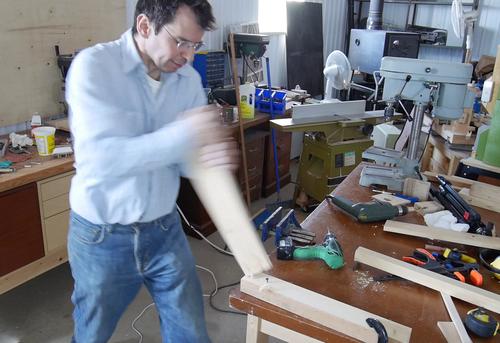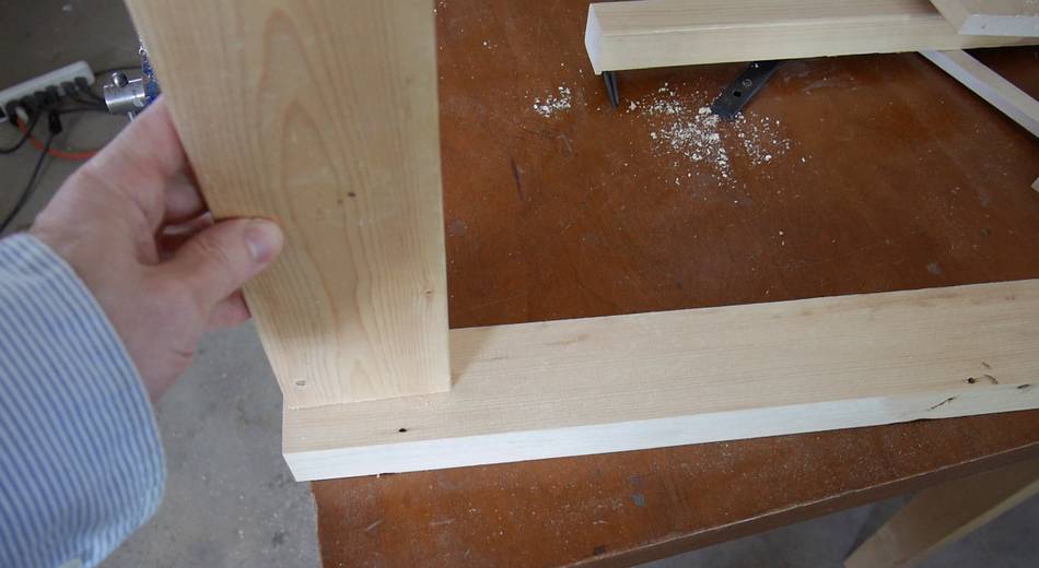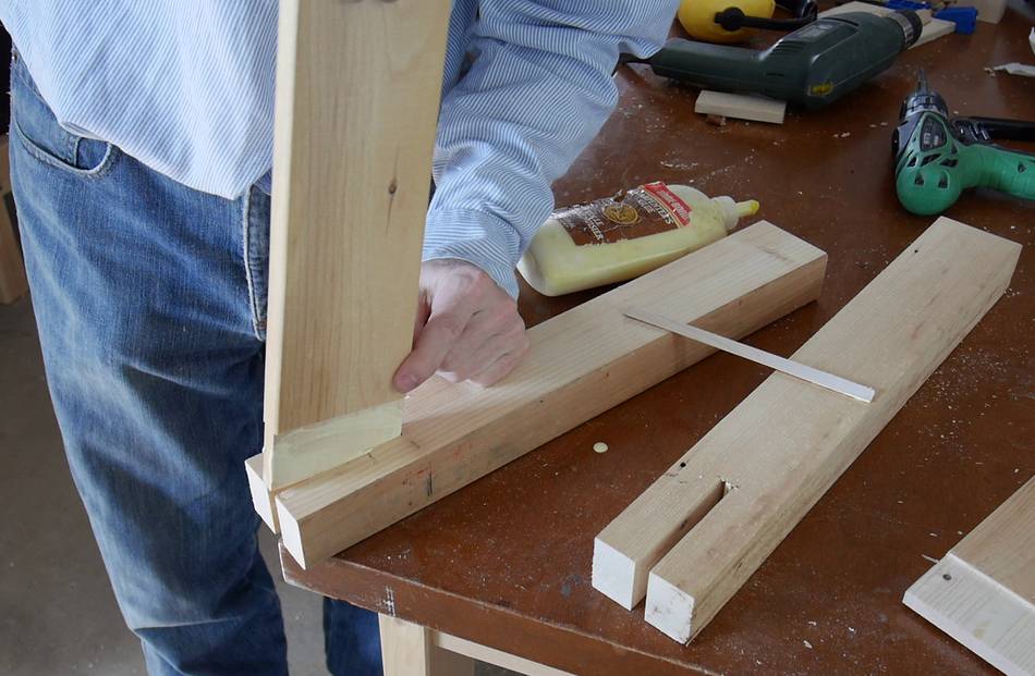 With glue spread on the tenon and the insides of the mortise, it's time to assemble.