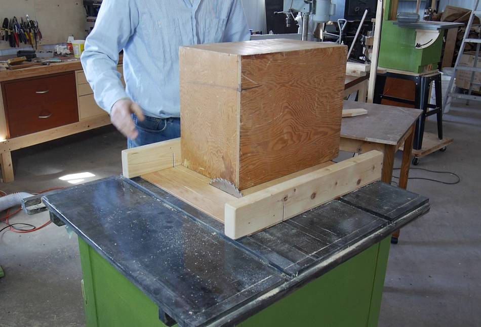 I'm going to cut the tenons using my table saw sled, with a plywood box on it.