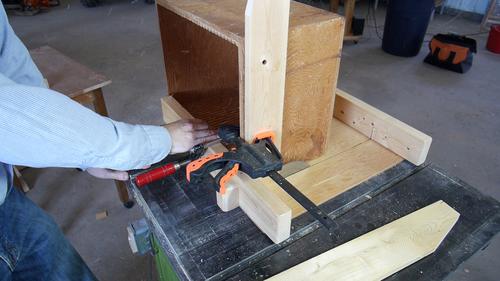 The workpiece is clamped to the box and the tenons are cut. I flipped the workpiece