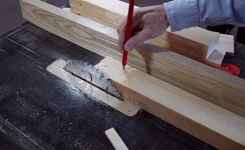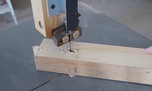 the 2x4 on the saw to cut just slightly beyond the mortise on the bottom side.