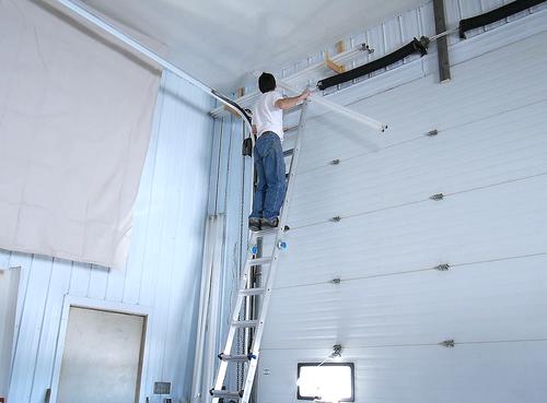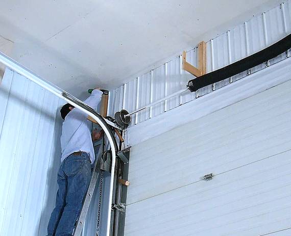 Then mounting the brackets above the garage door.