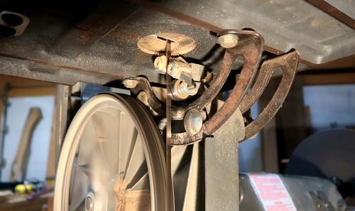 But the ShopSmith bandsaw reminded me of this Craftsman bandsaw, though without the broken tilting mechanism and messed up drive belt pulley. So not a lost cause like the craftsman bandsaw was.