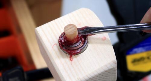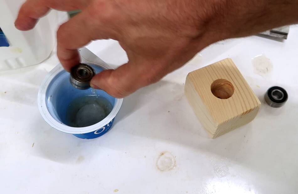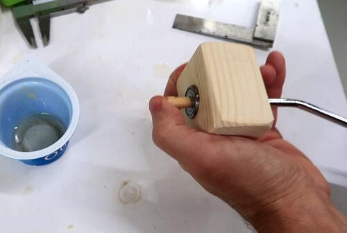 It's block of wood attached to the end of the vacuum cleaner hose has a 22 mm hole that the bearing just fits into at the top.