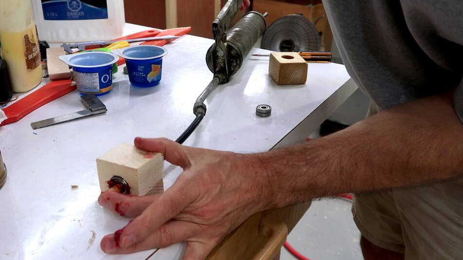 So I made this jig with a 22 mm hole for the bearing, and a smaller hole