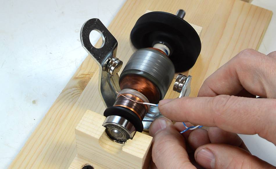 is applied to the contacts of the commutator on opposite ends, the rotor