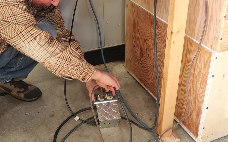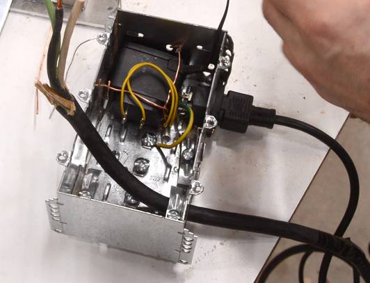 Then wiring it up. Conveniently, the electrical box has a strain relief