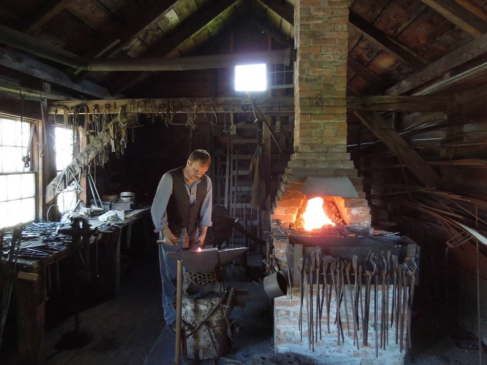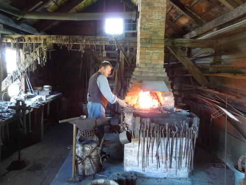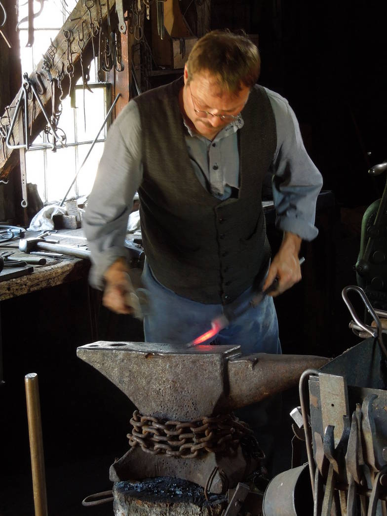The blacksmith was working on making a draw knife, starting with a raw chunk of metal,