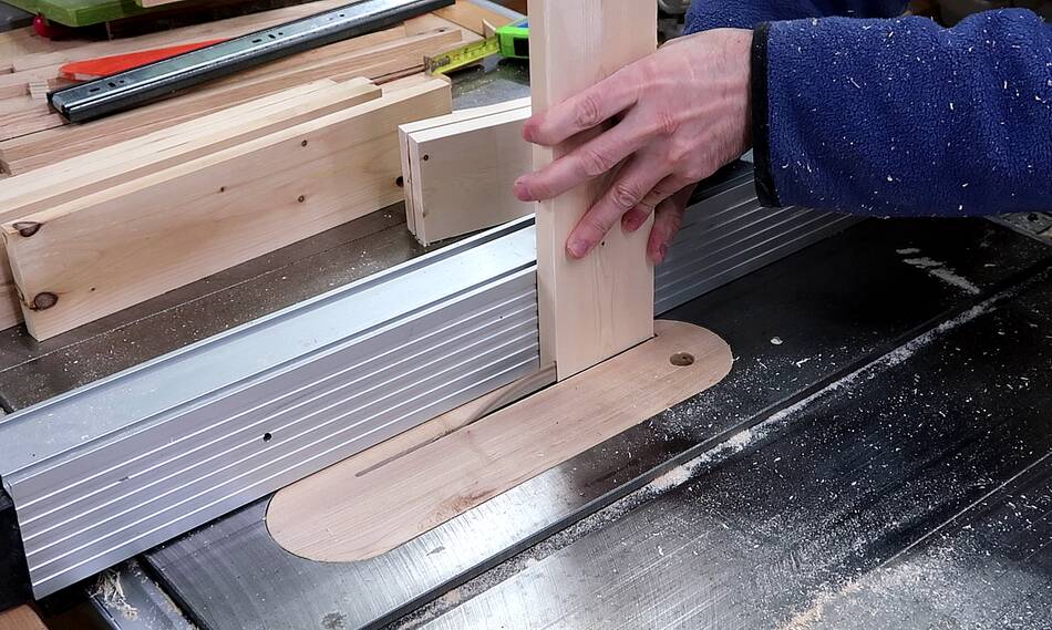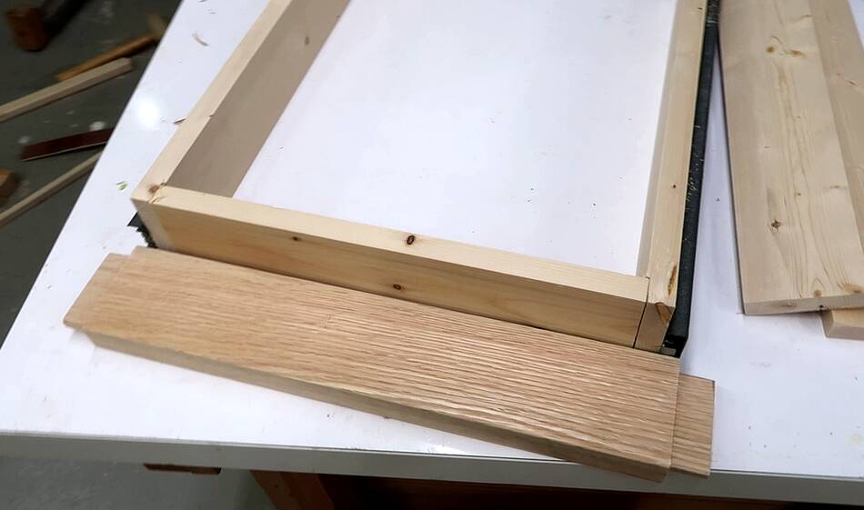 I cut a 45° bevel on the edges for the drawer front.