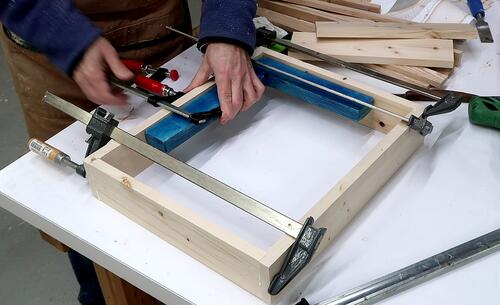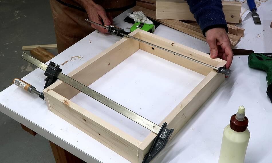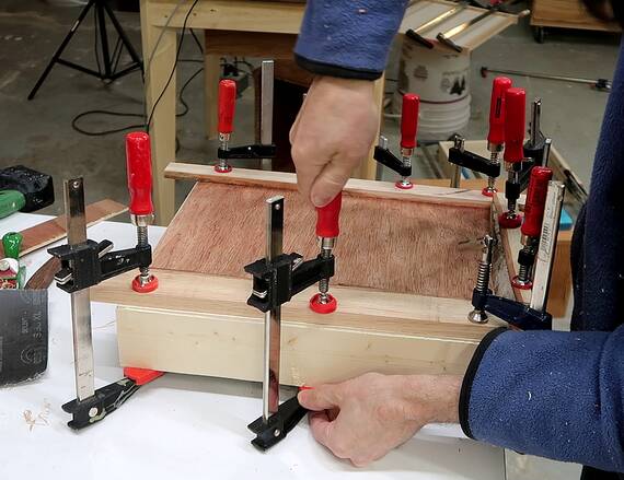 After the glue dried for the box, I glued on the bottom using lots of clamps