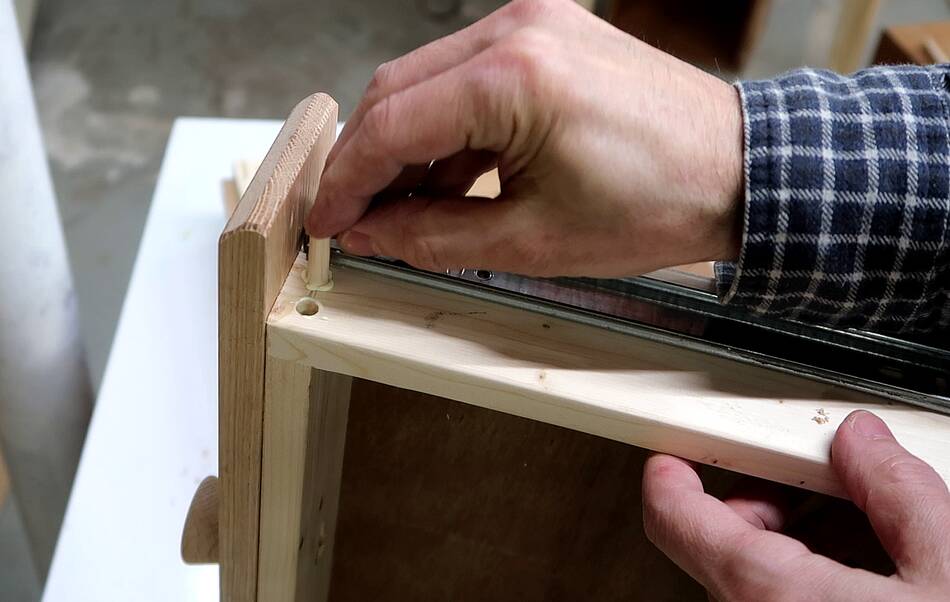 to get the drawer through between the dowels.
