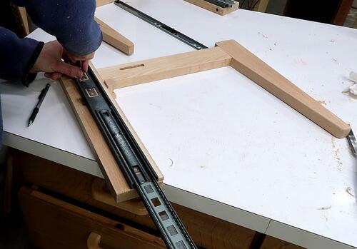 I had some extra 16" (41 cm) full extension drawer slides kicking around,