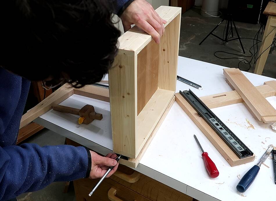 drawers and two strips of hardwood for it to slide in between to the sides of