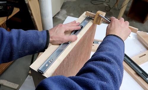 I positioned the drawer box against the slide to mark how far up the side