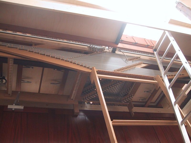 This picture shows a lot of the linkages from the keys to the valves in place.