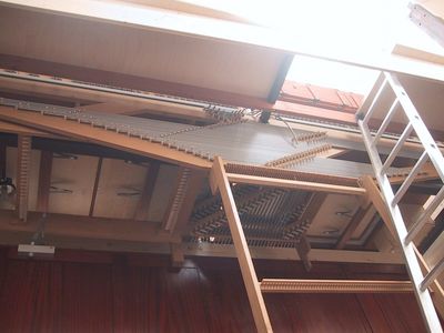 on the keyboard to the spacing on the windchest. Partially assembled.