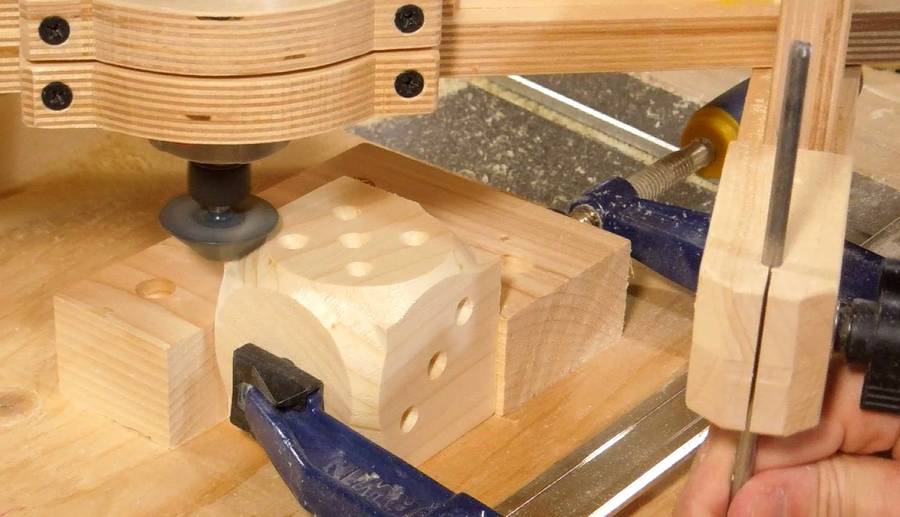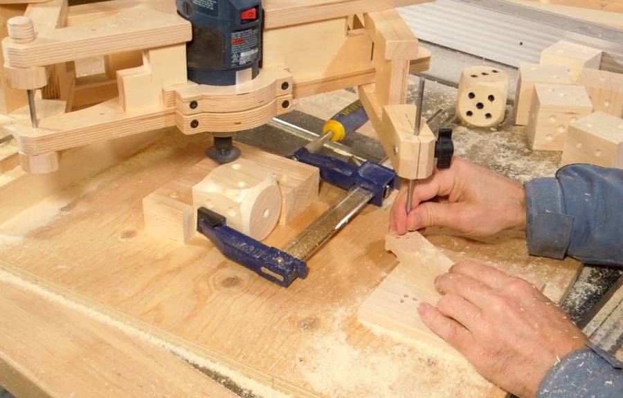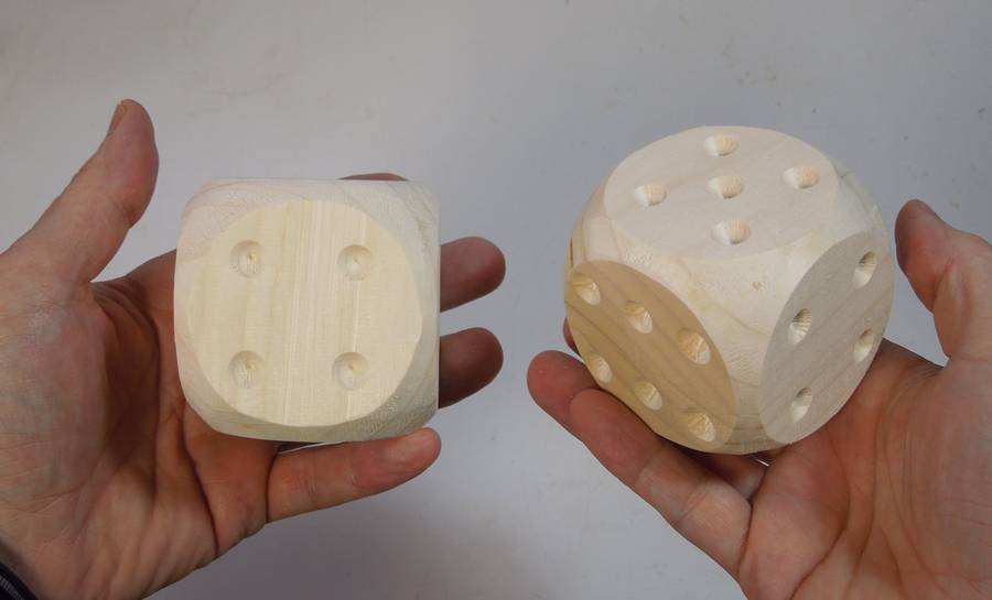 In the video, I round the corners and edges with a 1/2" roundover. But I started thinking about rounding the dice to be like one of those dice with the really rounded corners that roll so well. I came up with a neat method using my pantograph, so I thought I'd cover that in more detail.