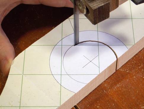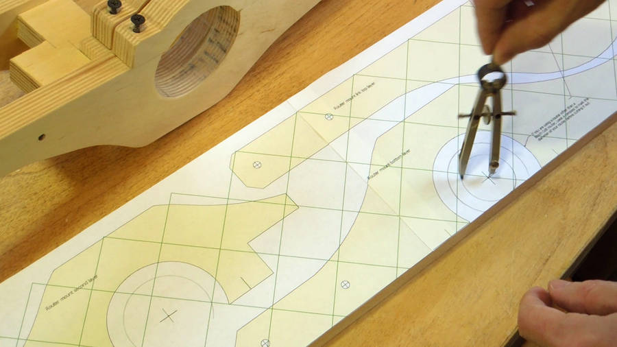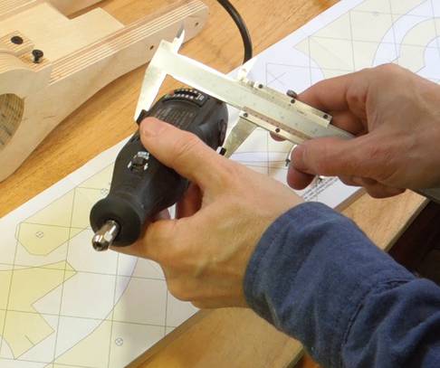 I checked how large a hole I needed for the Dremel, then drew circle on the plans of that size.