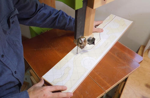 Once I had the design changes worked out, time to cut it out on the bandsaw, as usual.