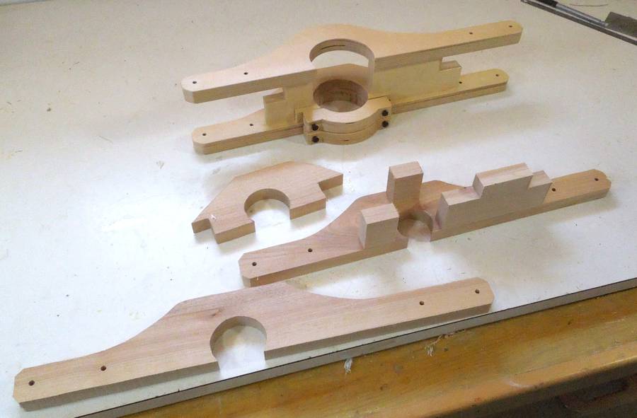 Parts all cut out and arranged. Behind the parts, my old router mount