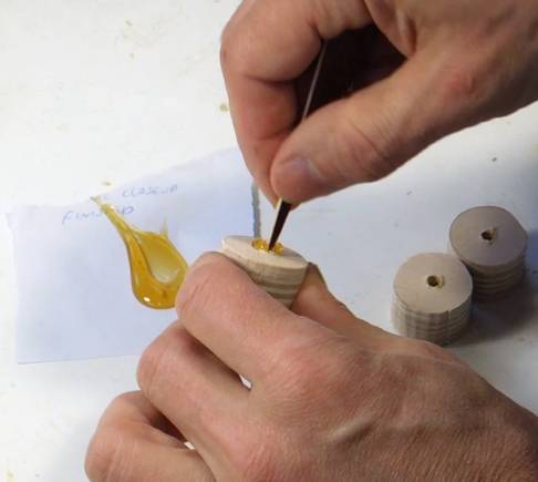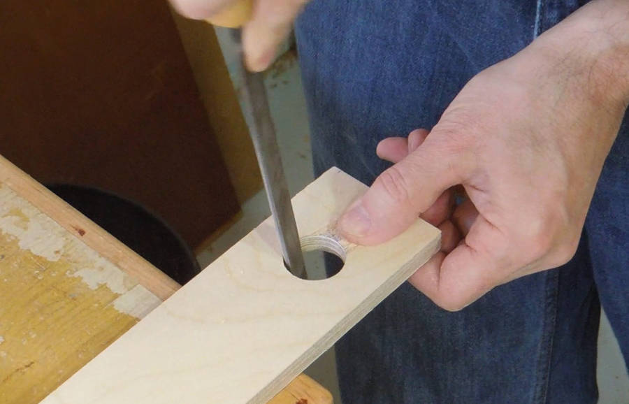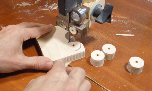 These start as small plywood circles cut out on the bandsaw. It's best to drill the holes