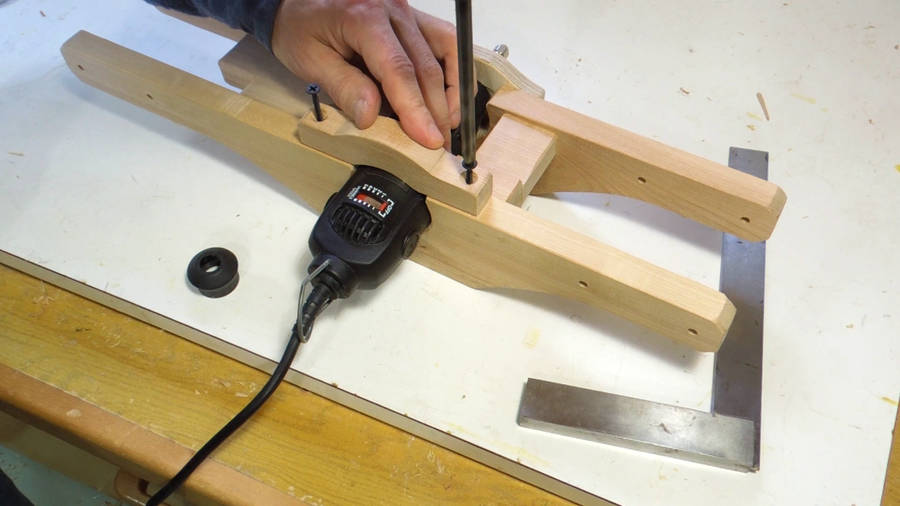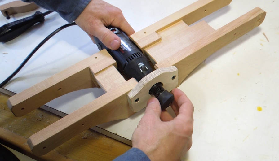 I used another block of wood to guide the shaft, then used a drill to spin the knob against