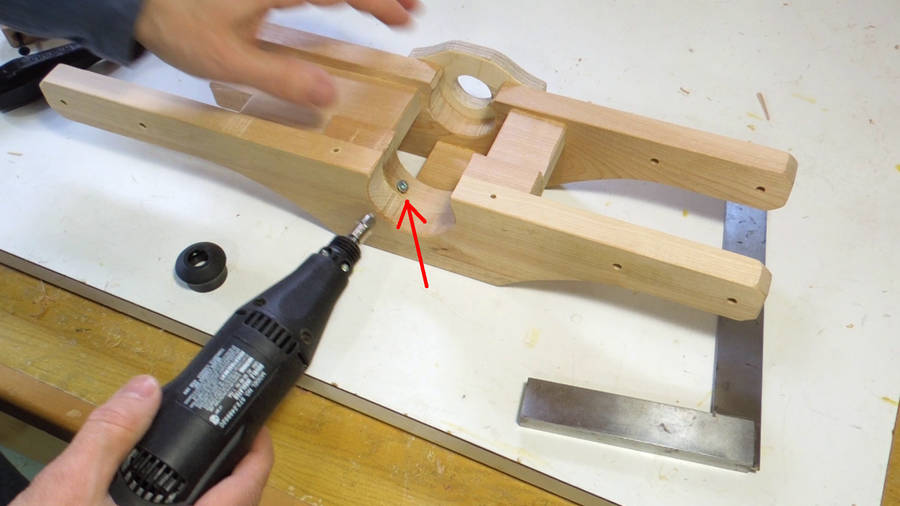 Drilling out the pivot holes. These need to be located precisely.