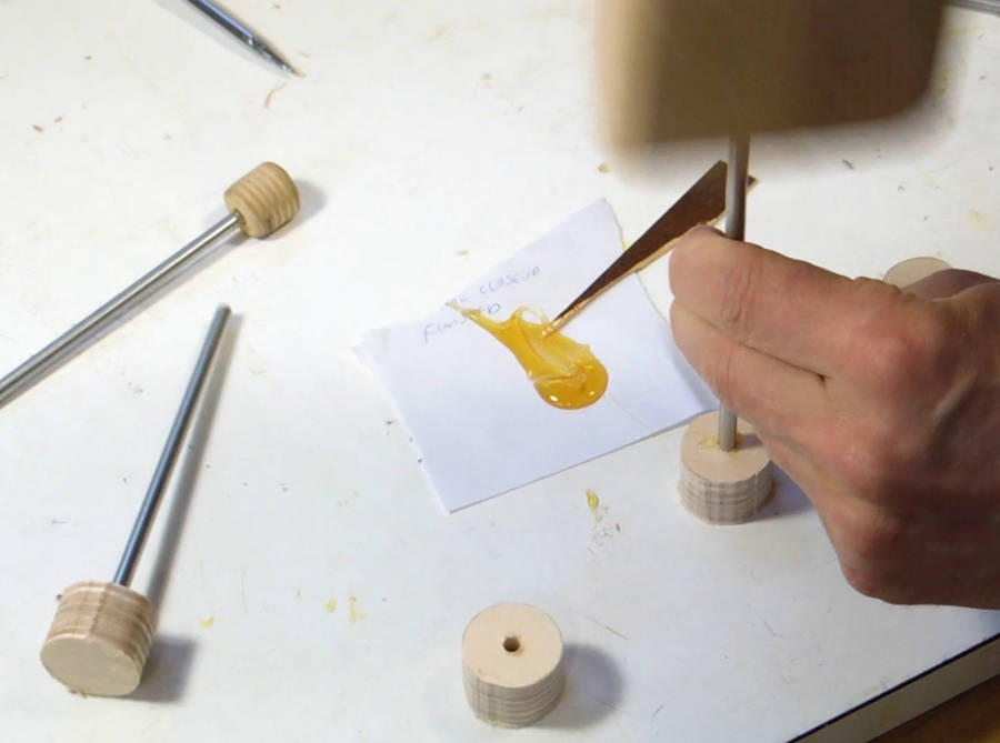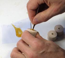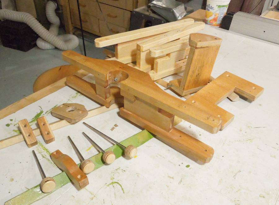Varnishing the completed pantograph for Pat. I varnish all the jigs that I expect to