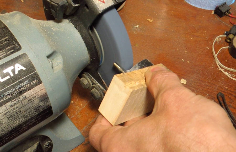 I then used my bench grinder to grind a taper onto the end of the shaft...