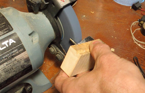 So I put the shaft in my drill, and again used a small block of wood to guide it.