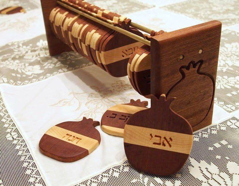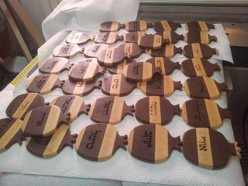 pomegranate shape coasters with names engraved.